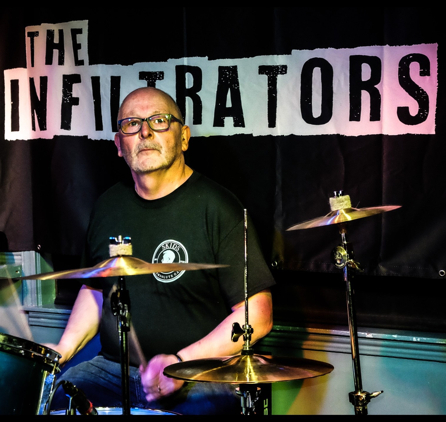 Jim is well known from his time fronting The Puzzlers which embraced Jim’s love of punk music. Not wishing to be constrained by one genre Jim formed The Infiltrators and has been a member of the band from its inception.